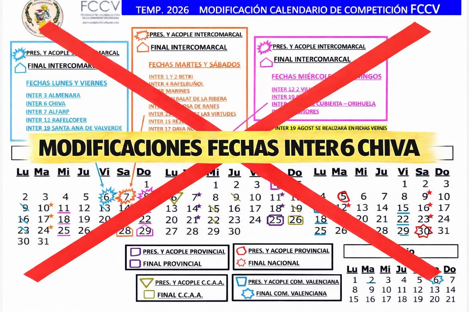 Desde la Federación se ruega a todos los participantes, clubes y aficionados que tomen nota de esta modificación en el calendario del campeonato.