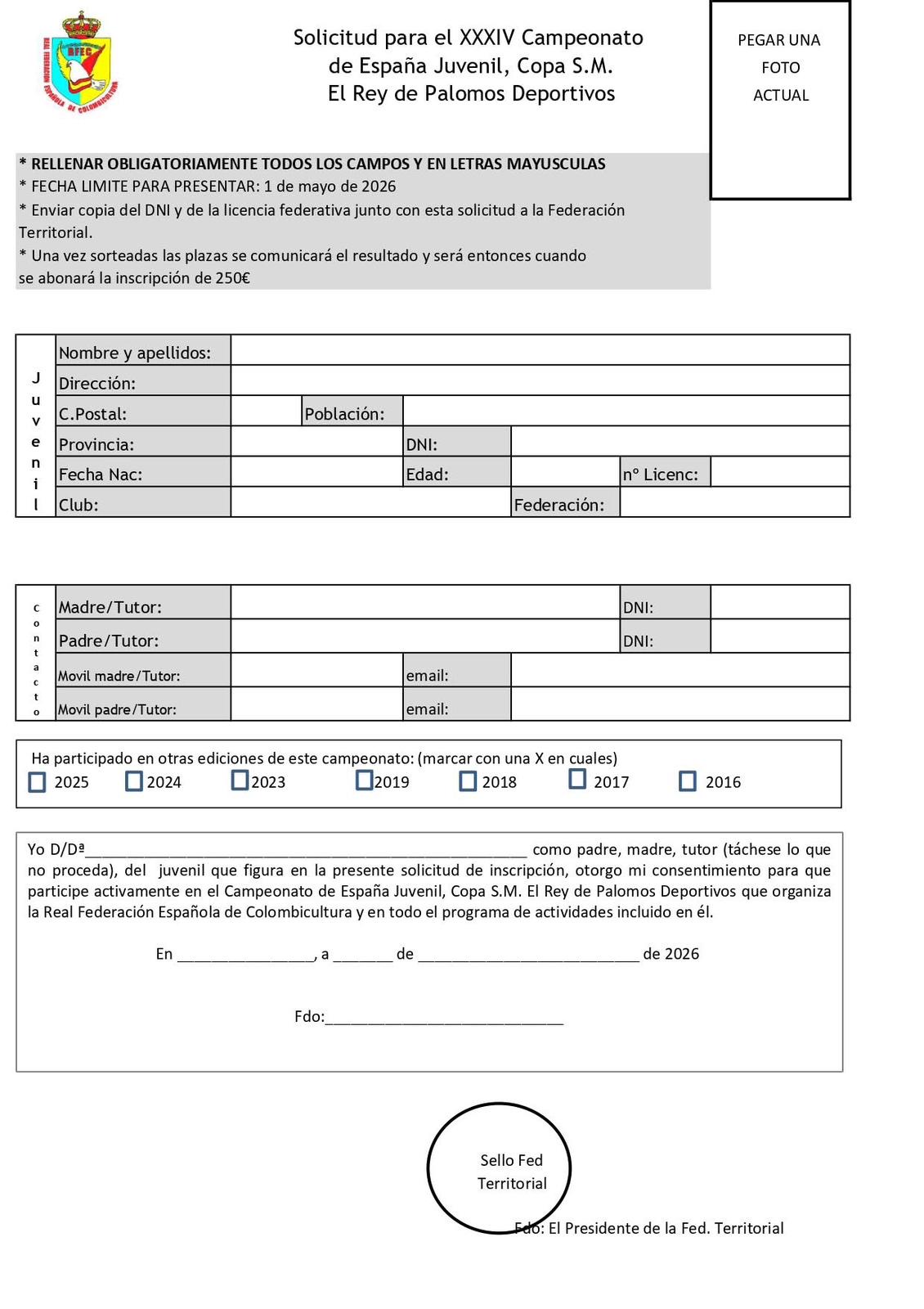 El plazo de inscripción finaliza el 1 de mayo y actualmente quedan muy pocas plazas disponibles, por lo que se recomienda realizar la inscripción lo antes posible a través de la Federación Autonómica correspondiente.